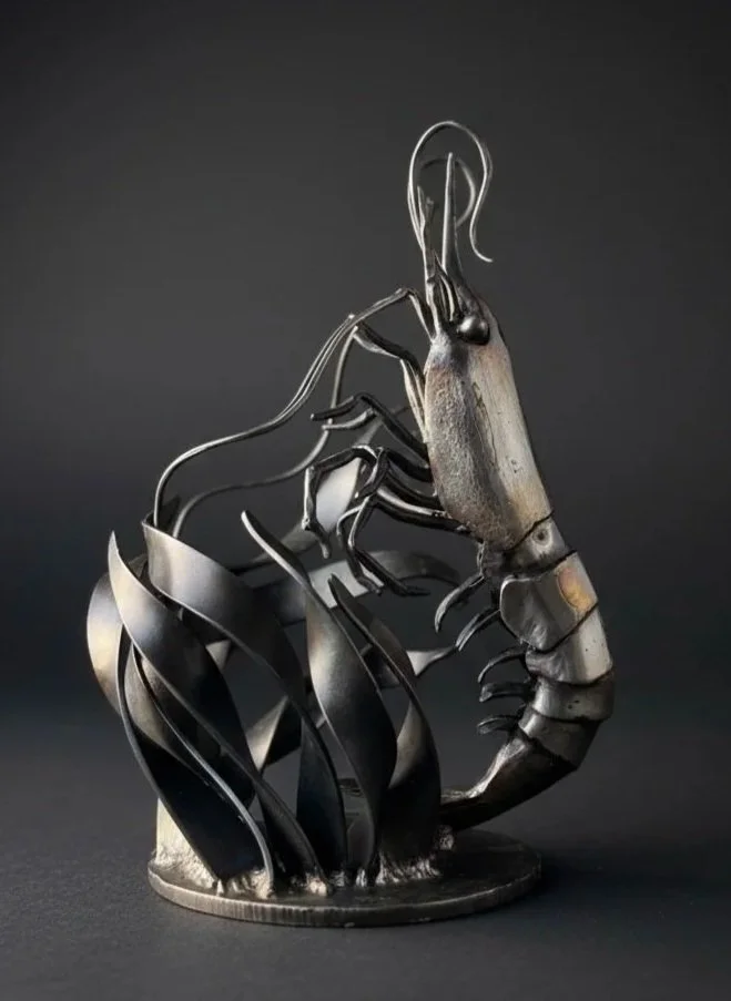 Katie Ford is an award-winning metal sculptor based on Salt Spring Island, British Columbia. Working in carbon steel, bronze, and copper, she creates hand-forged sculptures inspired by the marine life and wild landscapes of Canada’s West Coast. From jellyfish and salmon to bull kelp and spot prawns, her work captures the beauty and resilience of Pacific coast ecosystems.